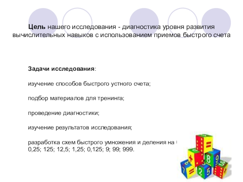 Слайд 4Цель нашего исследования - диагностика уровня развития вычислительных навыков с использованием