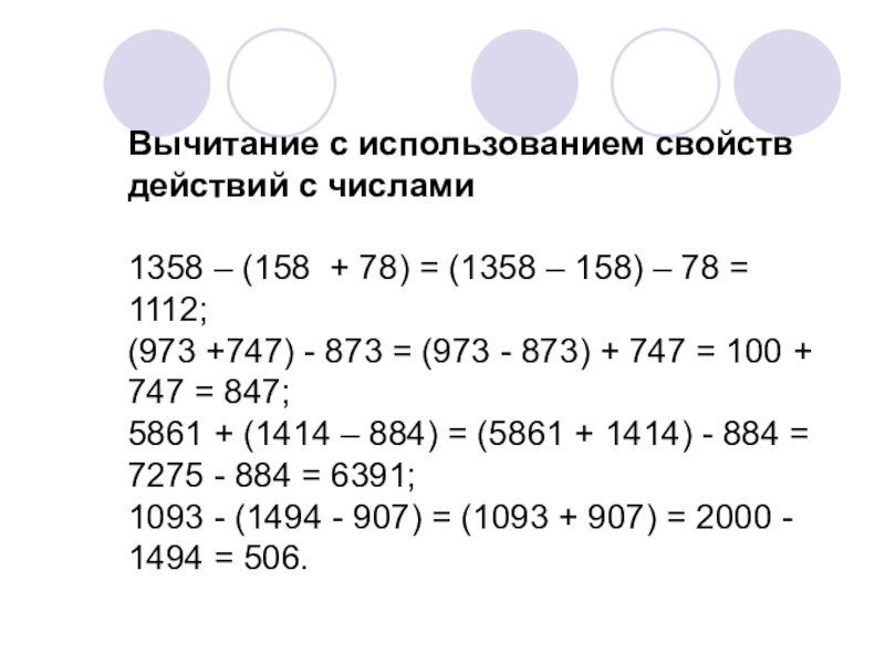 Слайд 11Вычитание с использованием свойств действий с числами