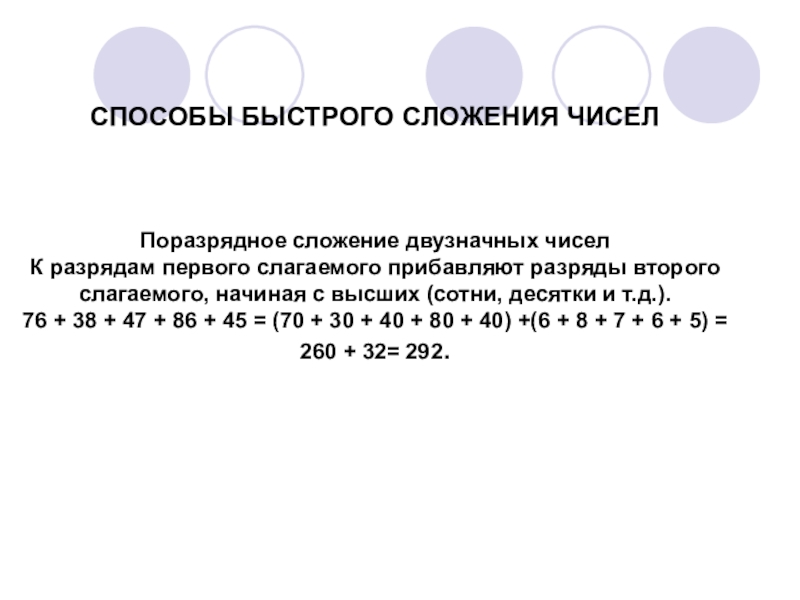 Слайд 5СПОСОБЫ БЫСТРОГО СЛОЖЕНИЯ ЧИСЕЛ