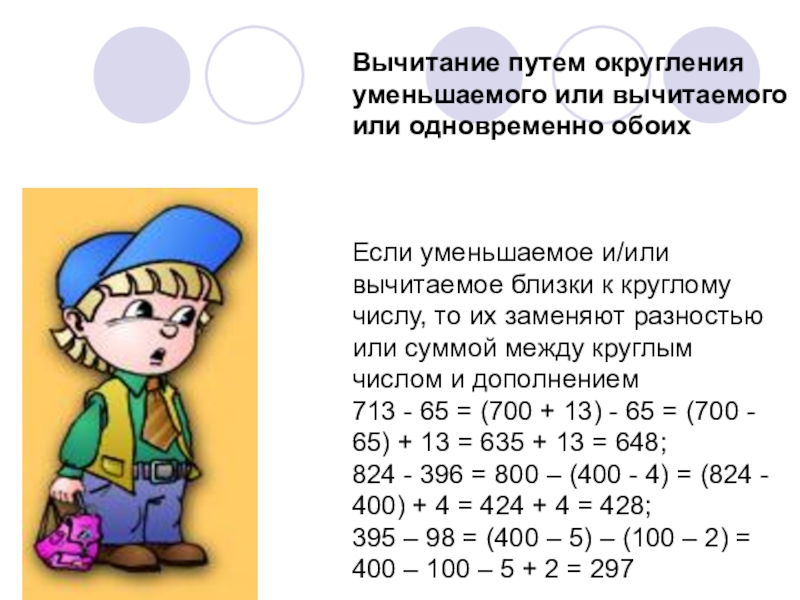 Слайд 13Вычитание путем округления уменьшаемого или вычитаемого или одновременно обоих