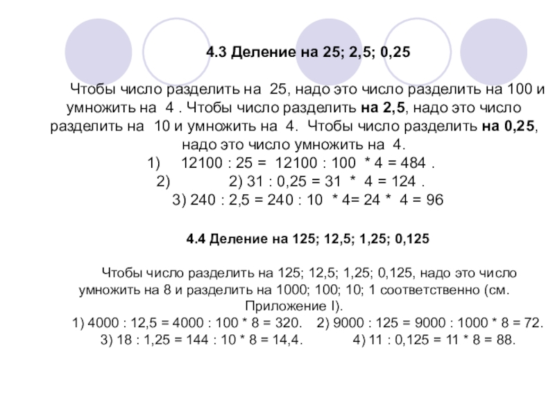 Слайд 244.3 Деление на 25; 2,5; 0,25