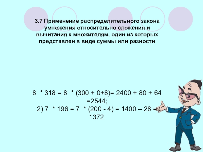 Слайд 223.7 Применение распределительного закона умножения относительно сложения и вычитания к множителям,