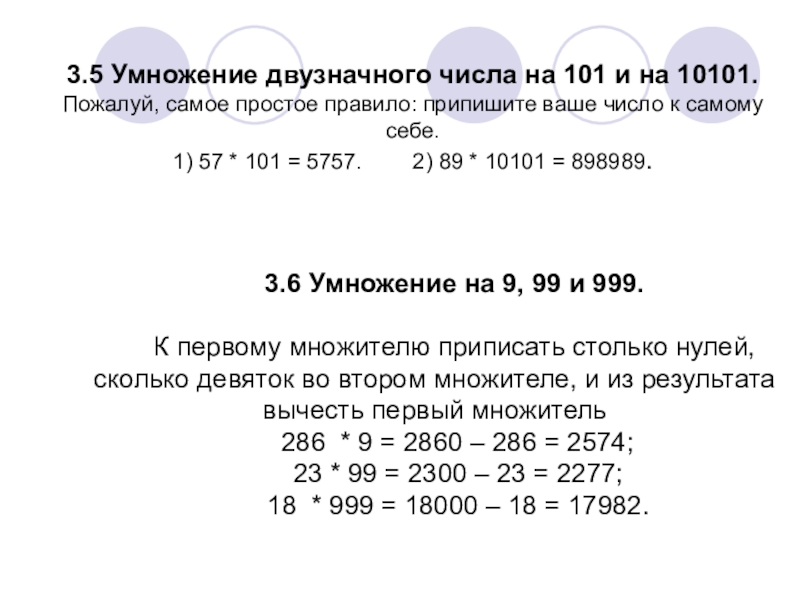 Слайд 213.5 Умножение двузначного числа на 101 и на 10101.