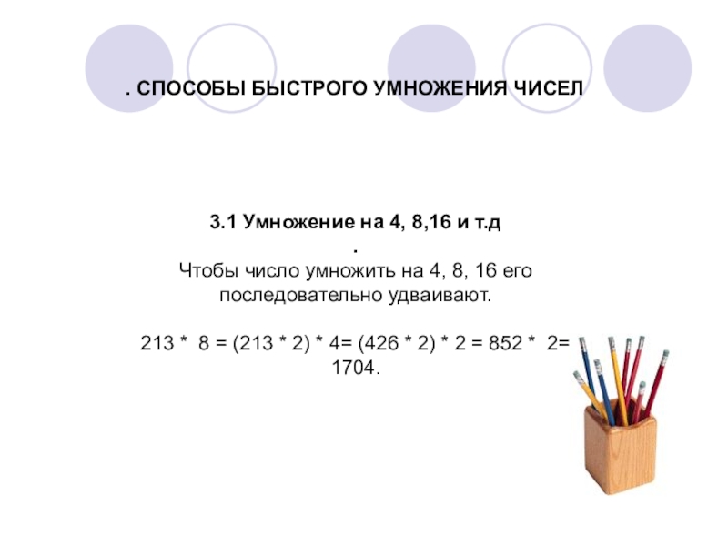 число умножить на 4, 8, 16 его последовательно удваивают.