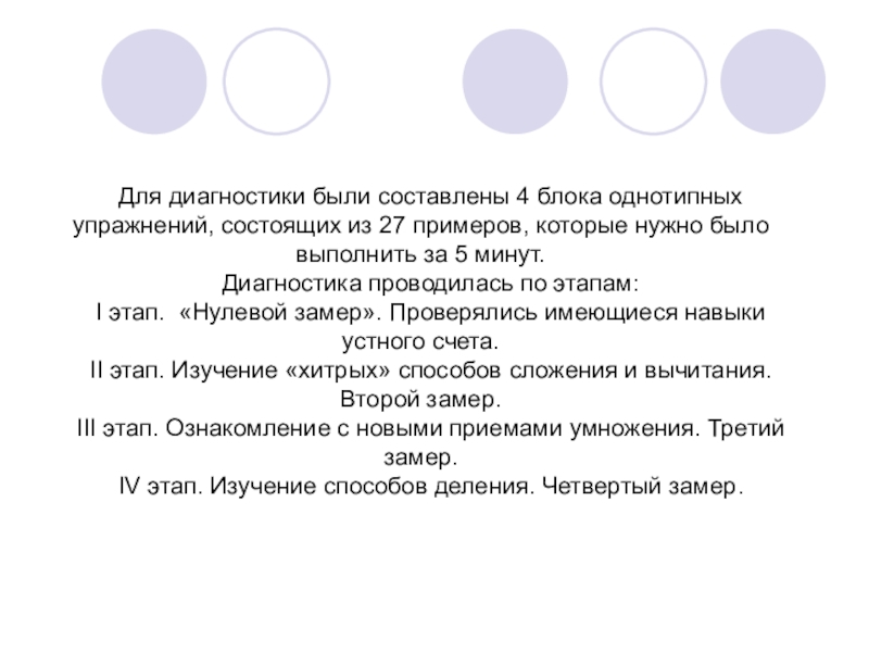 Слайд 27Для диагностики были составлены 4 блока однотипных упражнений, состоящих из 27