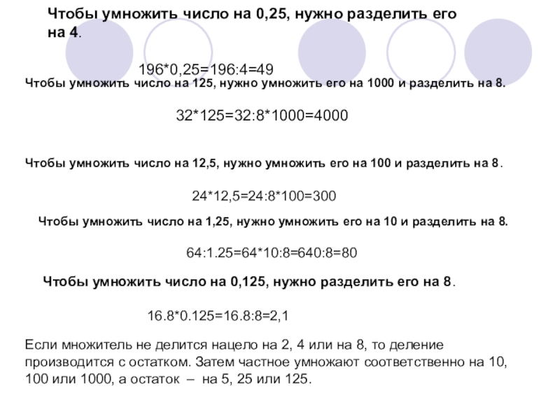Слайд 17Чтобы умножить число на 0,25, нужно разделить его на 4.
