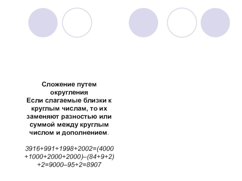Если одно слагаемое близко к круглому числу, то его заменяют разностью и дополнением между круглым числом