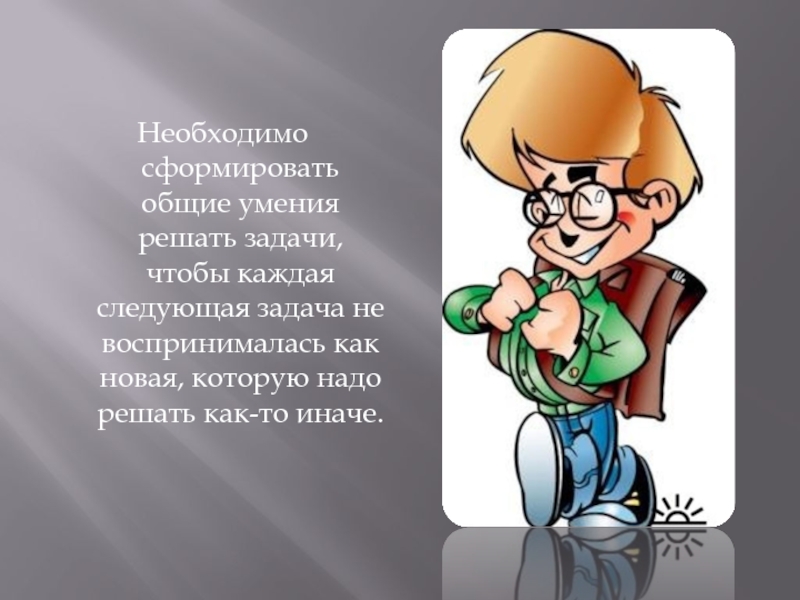 Необходимо сформировать общие умения решать задачи, чтобы каждая следующая задача не воспринималась как новая, которую надо решать