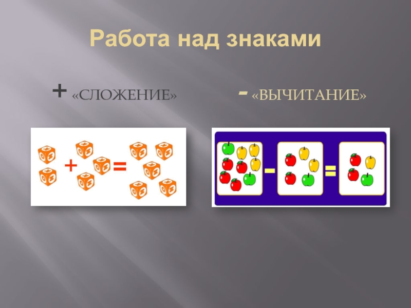 Работа над знаками+ «СЛОЖЕНИЕ»- «ВЫЧИТАНИЕ»