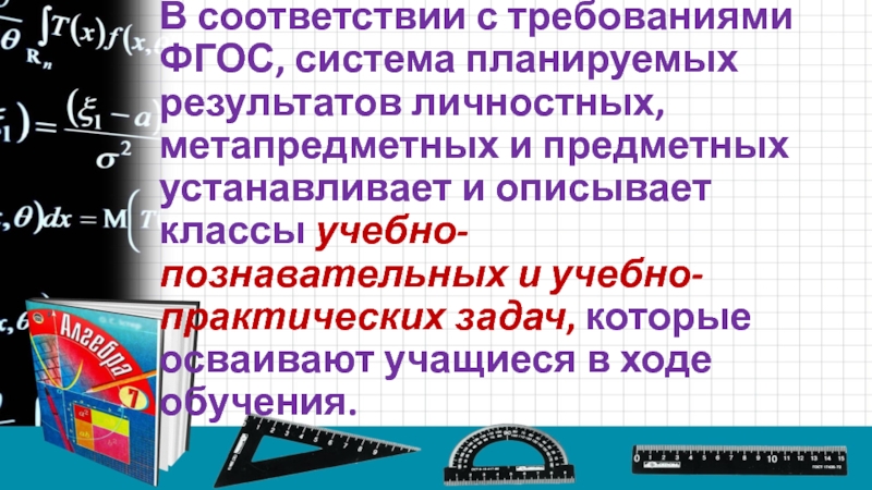предметных устанавливает и описывает классы учебно-познавательных и учебно-практических задач, которые осваивают учащиеся в ходе обучения.