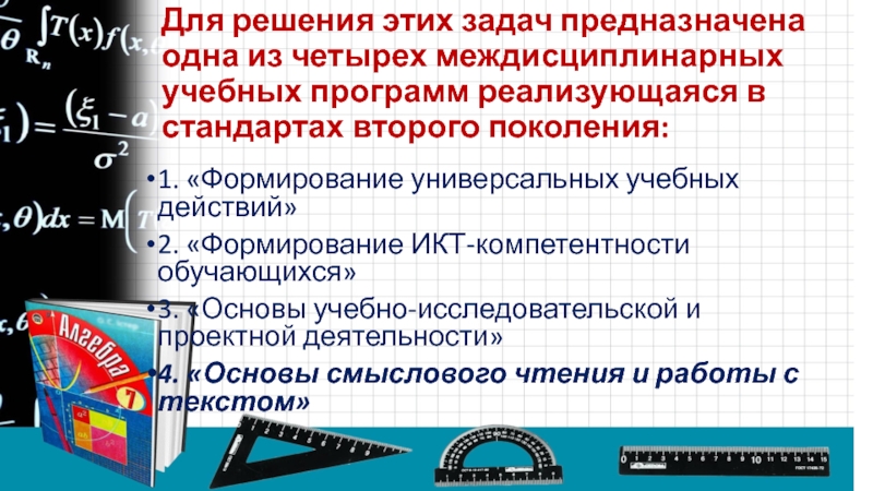 Слайд 3Для решения этих задач предназначена одна из четырех междисциплинарных учебных программ