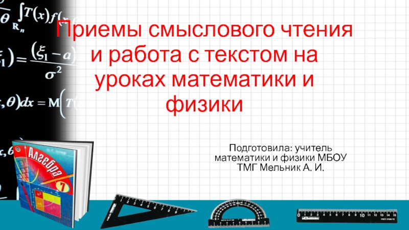 Слайд 1Приемы смыслового чтения и работа с текстом на уроках математики и