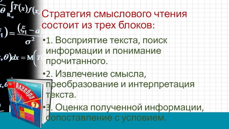 Слайд 4Стратегия смыслового чтения состоит из трех блоков: