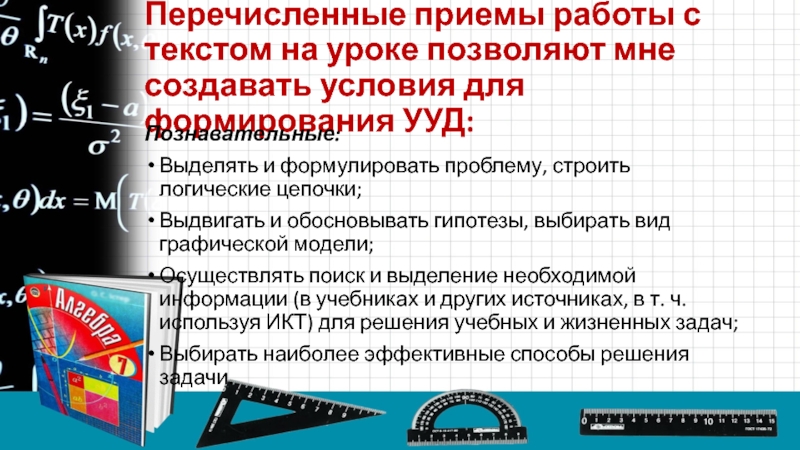 Слайд 26Перечисленные приемы работы с текстом на уроке позволяют мне создавать условия
