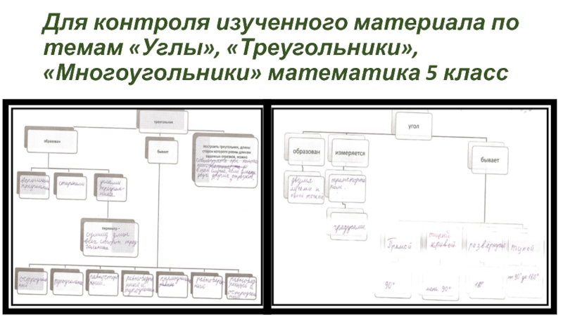Слайд 9Для контроля изученного материала по темам «Углы», «Треугольники», «Многоугольники» математика 5