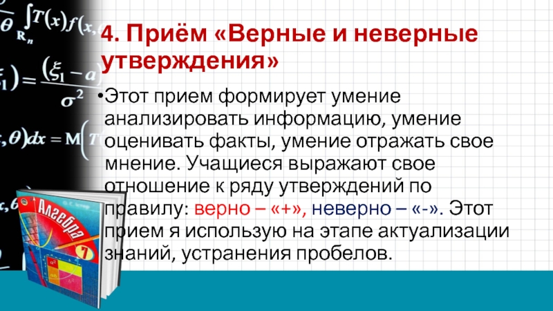 Слайд 114. Приём «Верные и неверные утверждения»