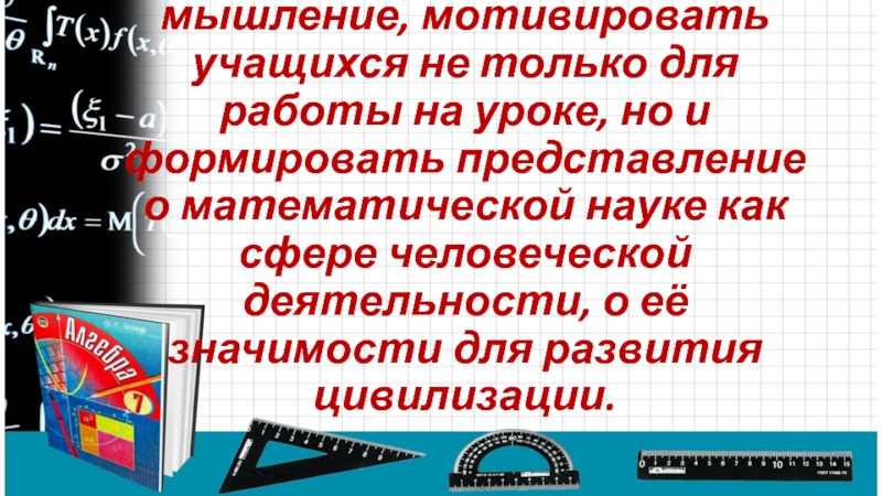 не только для работы на уроке, но и формировать представление о математической науке как сфере человеческой деятельности, о её значимости для развития цивилизации.