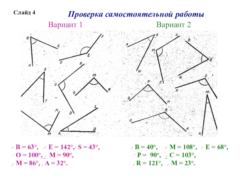 B = 63°, E = 142°, S = 43°, B = 40°, M = 108°, E = 68°,