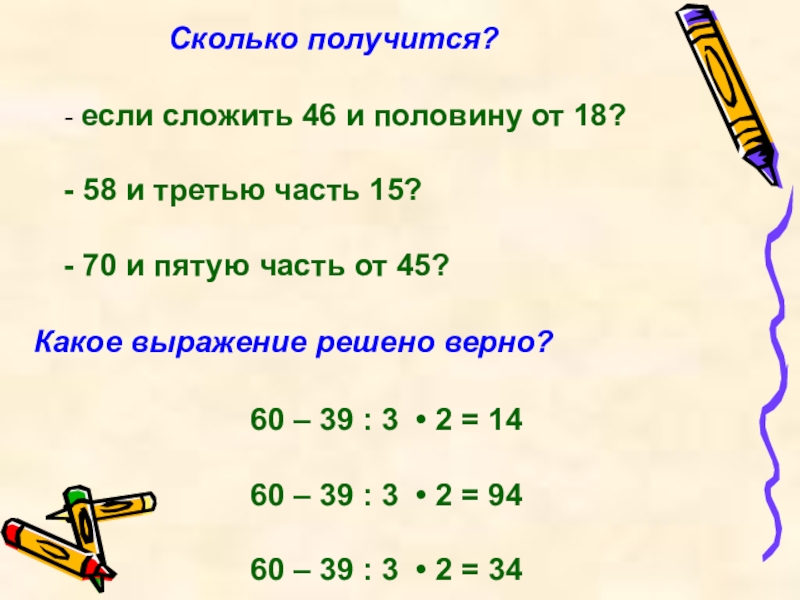 60 – 39 : 3 • 2 = 94