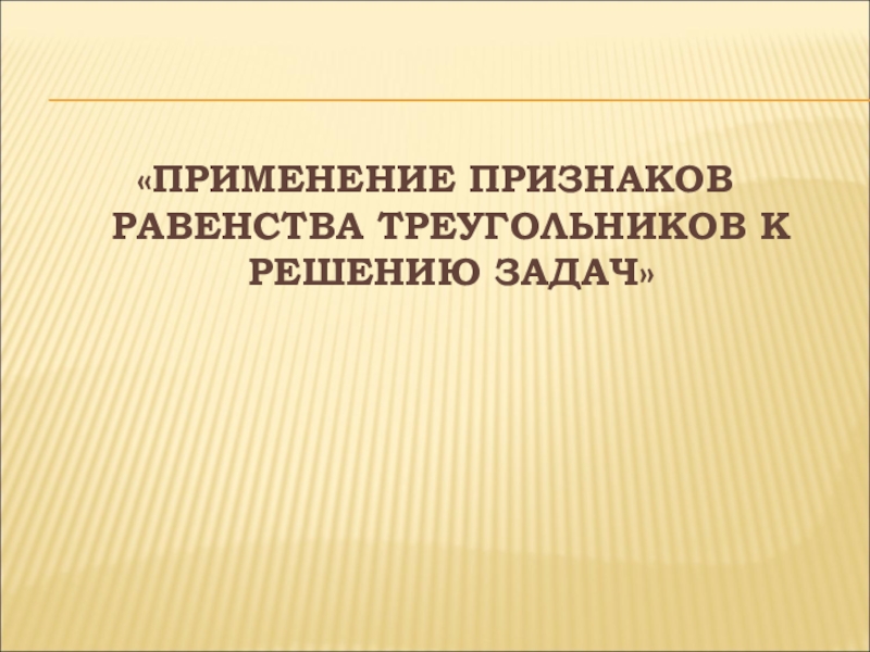 «ПРИМЕНЕНИЕ ПРИЗНАКОВ РАВЕНСТВА ТРЕУГОЛЬНИКОВ К РЕШЕНИЮ ЗАДАЧ»