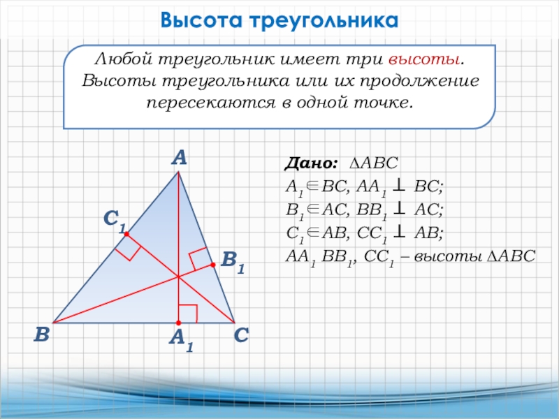 АА1 ВВ1, СС1 – высоты ∆АВС