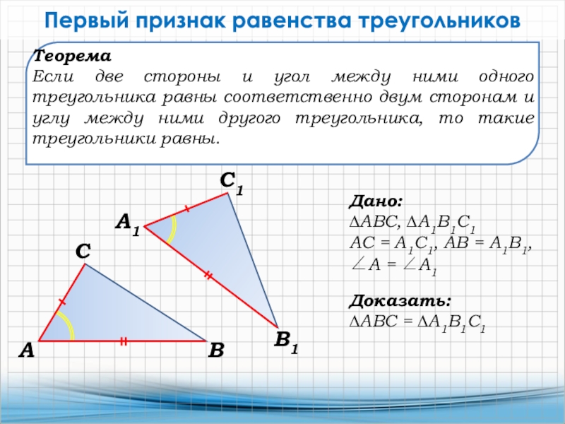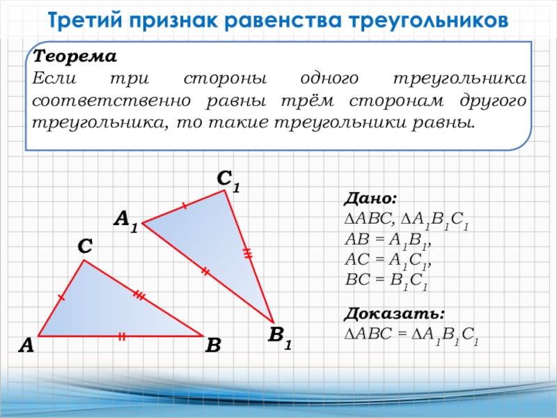 АВ = А1В1, АС = А1С1, ВС = В1С1