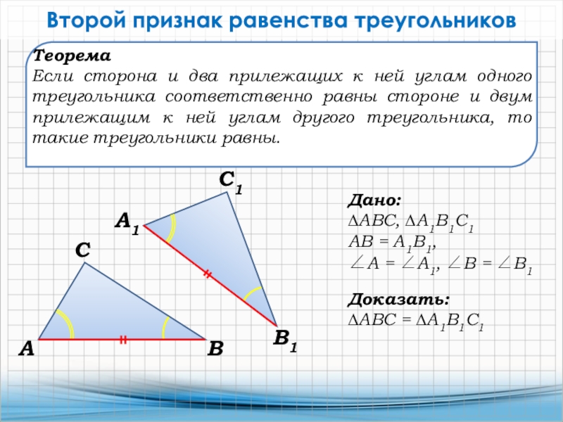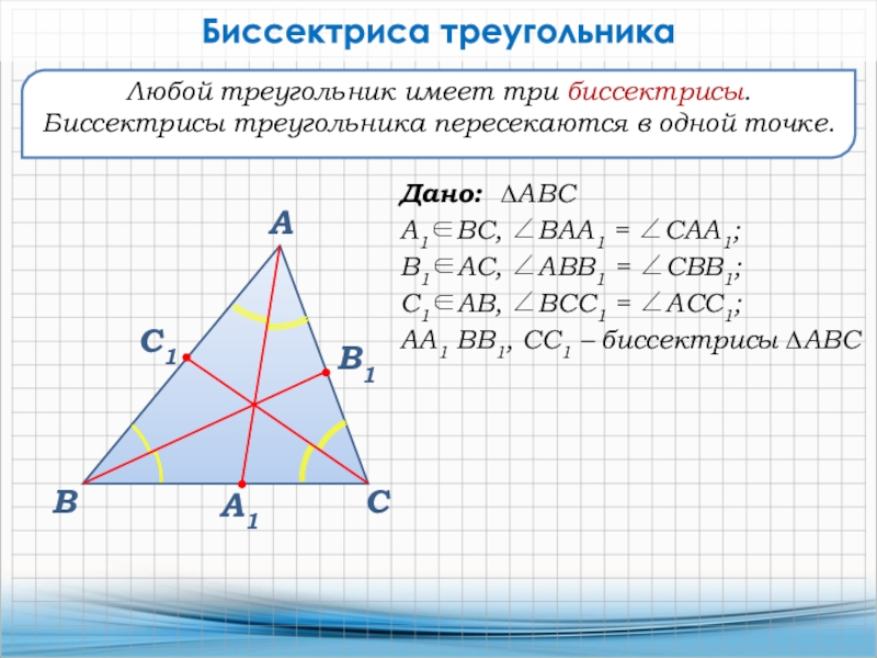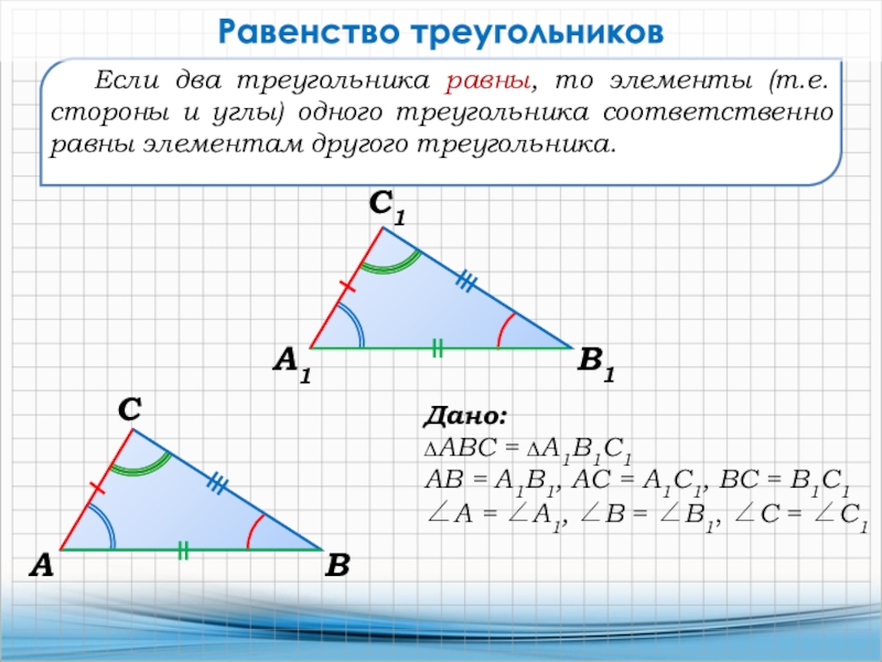 ∠А = ∠А1, ∠В = ∠В1, ∠С = ∠С1