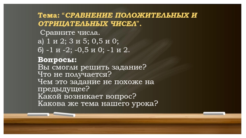 Тема: “СРАВНЕНИЕ ПОЛОЖИТЕЛЬНЫХ И ОТРИЦАТЕЛЬНЫХ ЧИСЕЛ”.