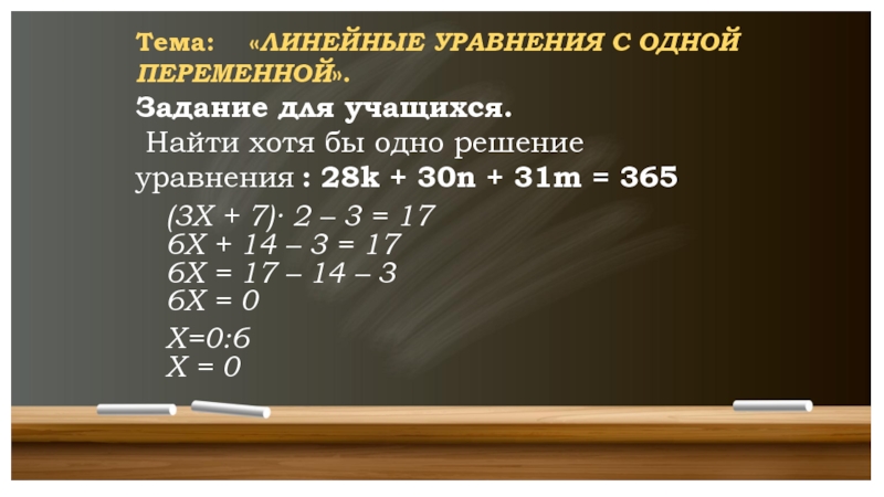 Тема: «ЛИНЕЙНЫЕ УРАВНЕНИЯ С ОДНОЙ ПЕРЕМЕННОЙ».