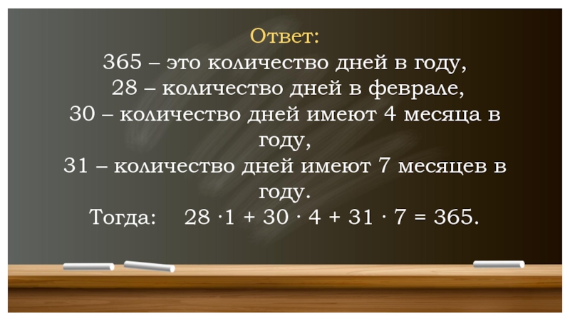 Найти хотя бы одно решение уравнения : 28k + 30n + 31m = 365