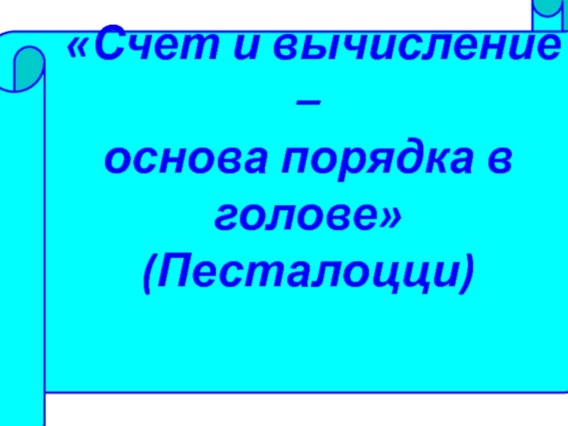 Слайд 7 «Счет и вычисление – основа порядка в голове» (Песталоцци)