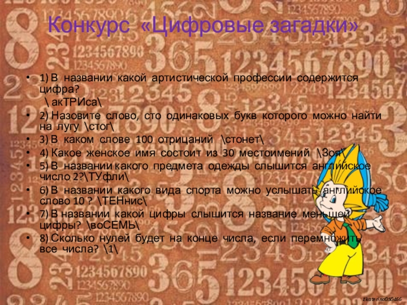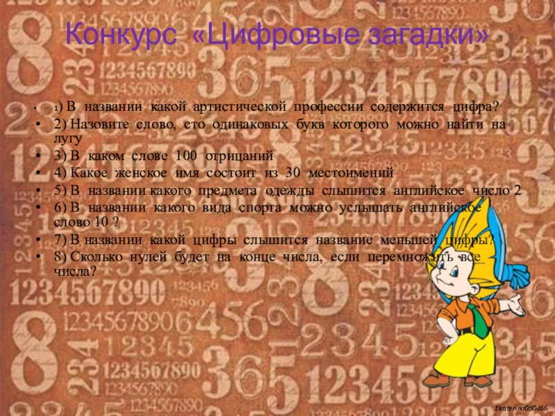 8) Сколько нулей будет на конце числа, если перемножить все числа?