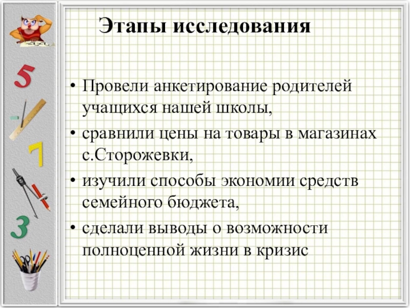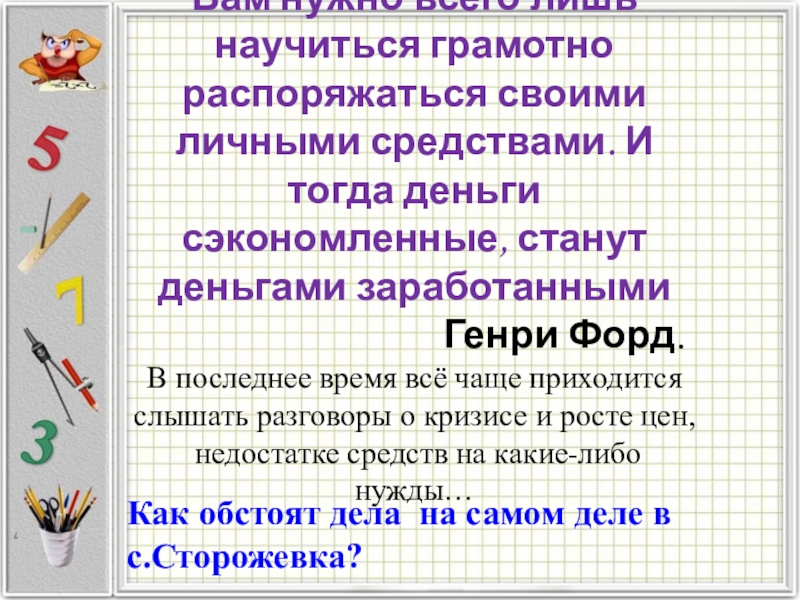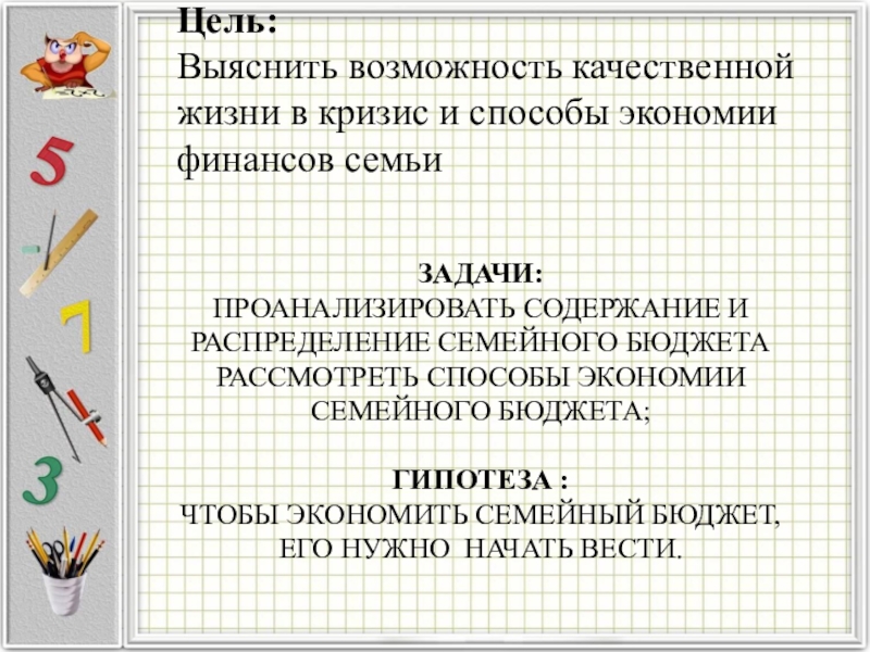 Выяснить возможность качественной жизни в кризис и способы экономии финансов семьи