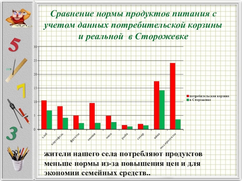 жители нашего села потребляют продуктов меньше нормы из-за повышения цен и для экономии семейных средств..