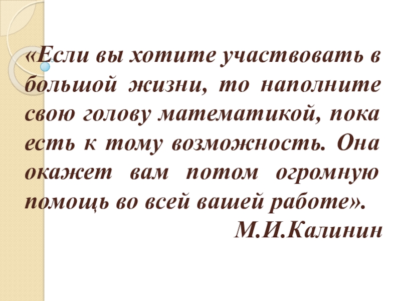 «Математику уже затем учить надо, что она ум в порядок приводит».
