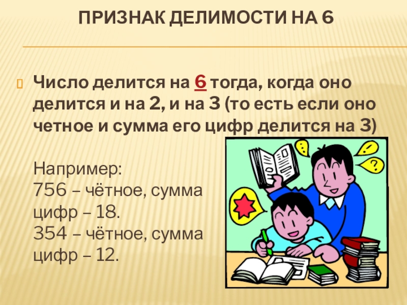 и на 2, и на 3 (то есть если оно четное и сумма его цифр делится на 3)