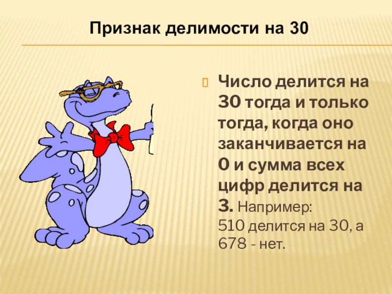 когда оно заканчивается на 0 и сумма всех цифр делится на 3. Например: