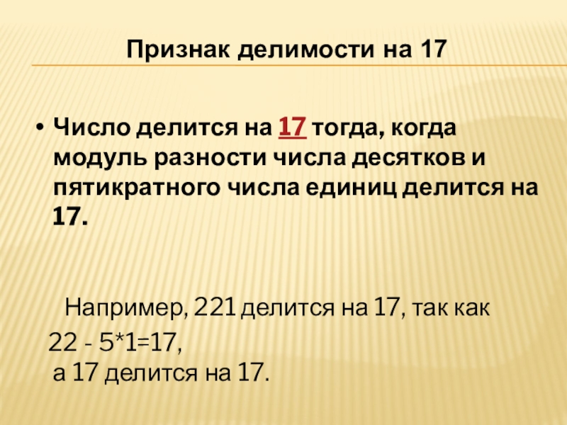 чётных местах и сумму цифр, стоящих на нечётных местах. Число делится на 11 тогда и только тогда, когда разность этих сумм делится на 11 (в частности равна 0).
