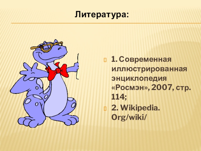 1. Современная иллюстрированная энциклопедия «Росмэн», 2007, стр. 114;