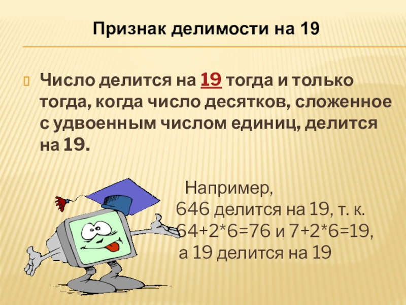 когда число десятков, сложенное с удвоенным числом единиц, делится на 19.