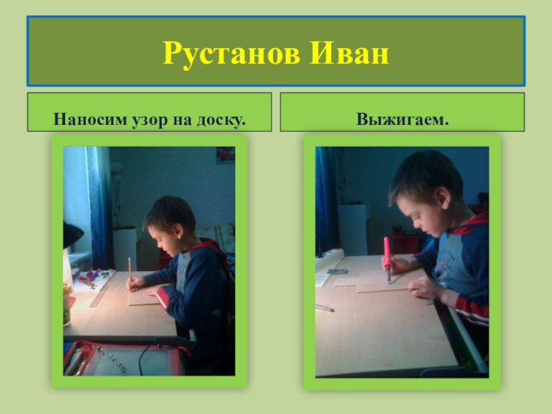 Рустанов ИванНаносим узор на доску.Выжигаем.