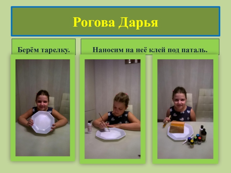 Рогова ДарьяБерём тарелку.Наносим на неё клей под паталь.