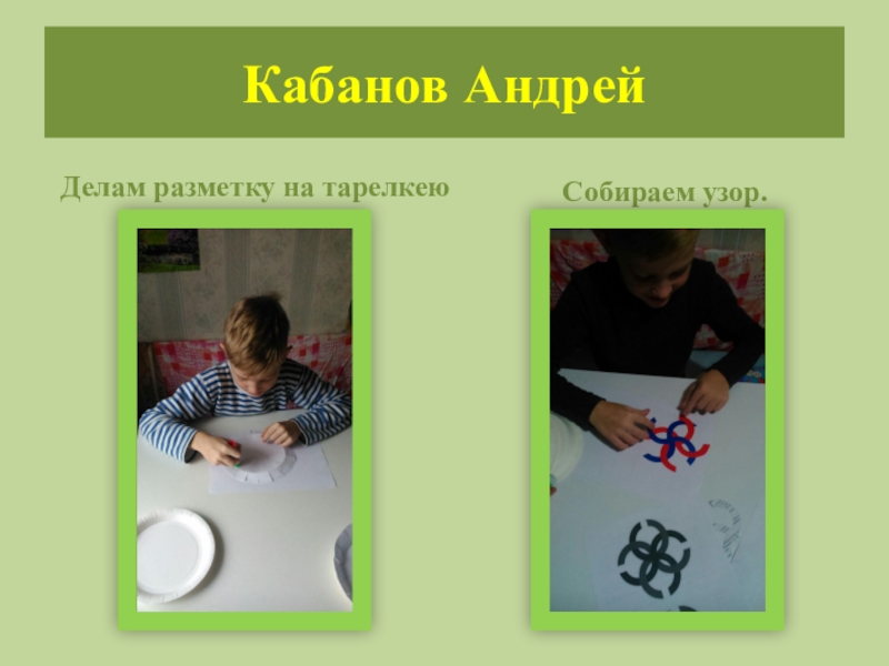 Кабанов АндрейДелам разметку на тарелкеюСобираем узор.
