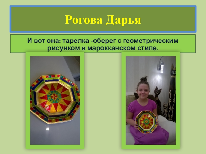 Рогова ДарьяИ вот она: тарелка -оберег с геометрическим рисунком в марокканском стиле.
