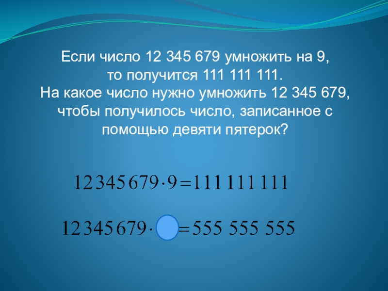умножить 12 345 679, чтобы получилось число, записанное с помощью девяти пятерок?