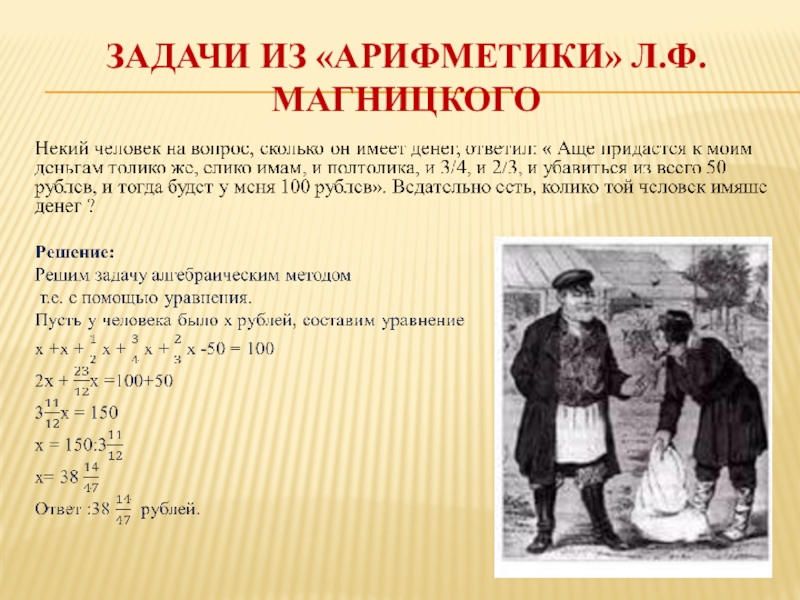 2. Осуществить подборку наиболее интересных занимательных задач из «Арифметики»