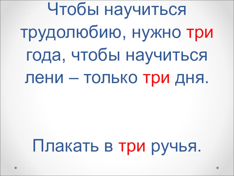 Слайд 11Чтобы научиться трудолюбию, нужно три года, чтобы научиться лени – только