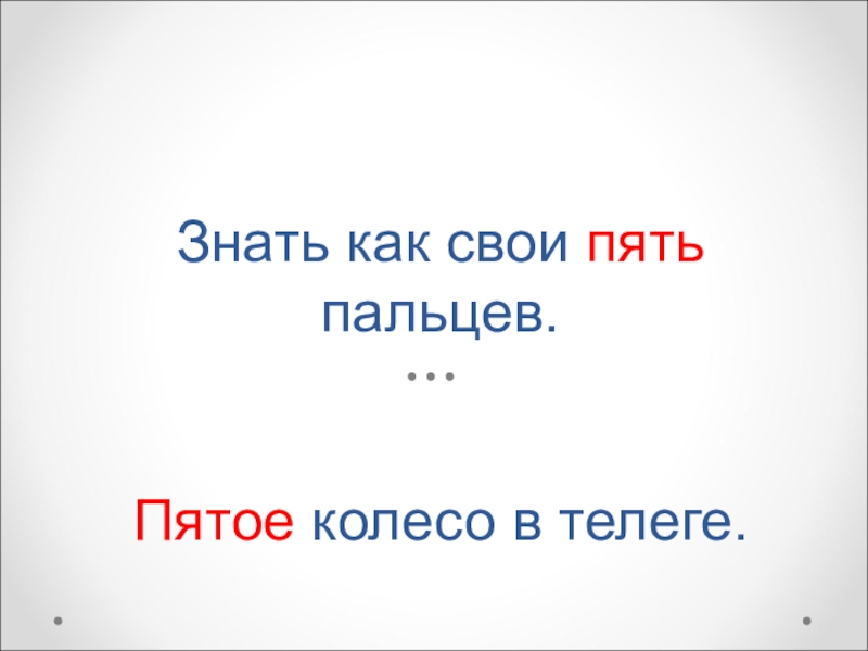 Слайд 17Знать как свои пять пальцев. Пятое колесо в телеге.