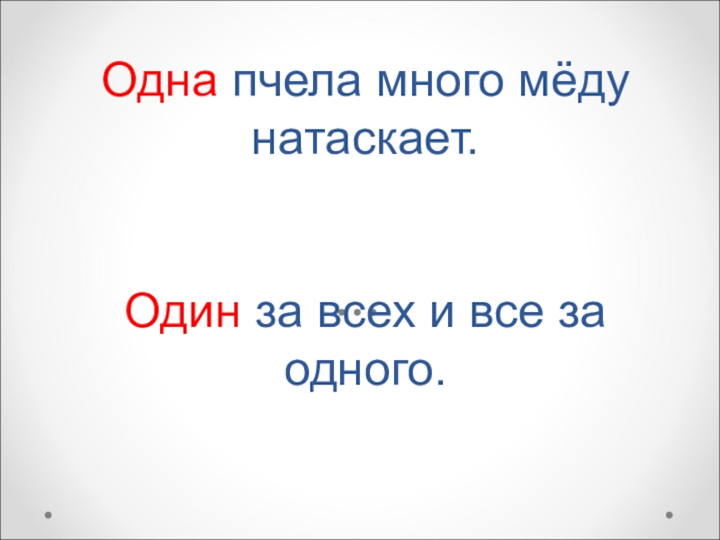 Слайд 5Одна пчела много мёду натаскает. Один за всех и все за одного.