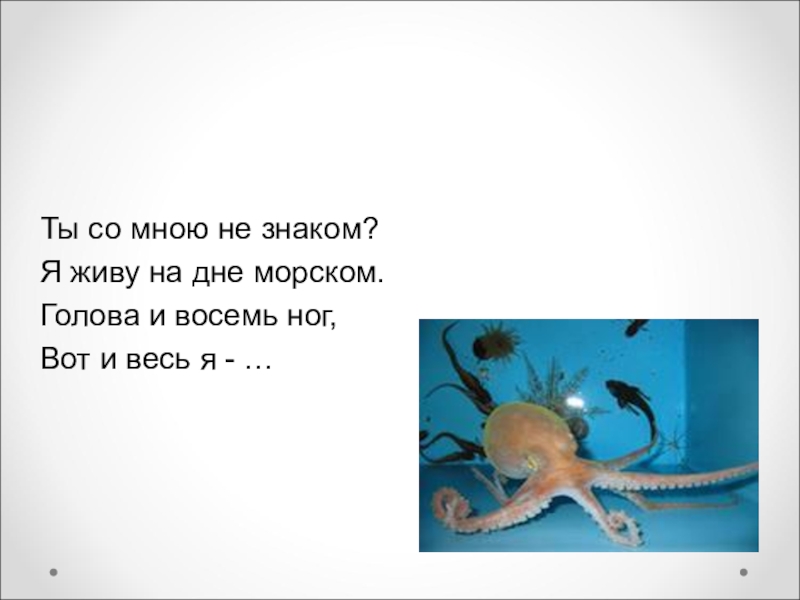Ты со мною не знаком?Я живу на дне морском.Голова и восемь ног,Вот и весь я - …
